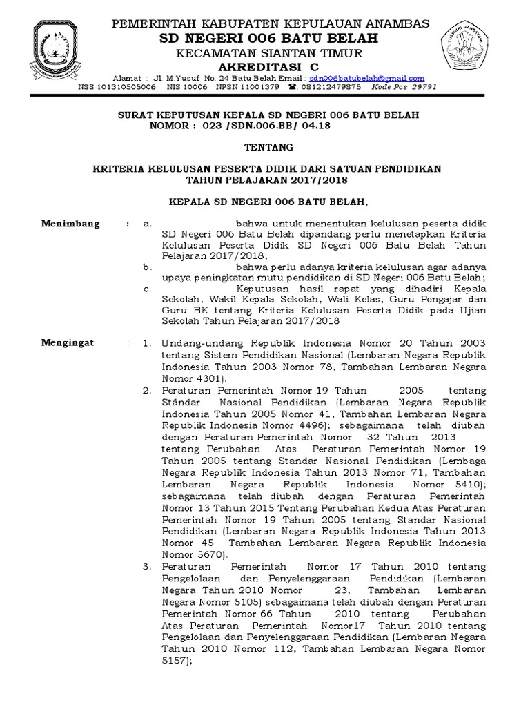 Http Www Sma1pakem Sch Id Wp Content Uploads 2020 05 Sk Kepala Sman 1 Pakem Tentang Penetapan Kelulusan Peserta Didik Pdf from Contoh surat keputusan kenaikan jabatan karyawan. 7 downloads 110 views 87kb size. Dengan diterbitkannya surat keputusan ini, saya selaku pimpinan cv maju mundur: Keputusan pimpinan cv maju mundur. Pembacaan surat keputusan kelulusan siswa kelas vi tahun pelajaran 2019/2020. Sripendowo tahun pelajaran 2010/2011, tentang kelulusan peserta ujian perlu ditetapkan melalui surat keputusan (sk) kepala sekolah. Dan pada postingan kali ini, saya akan membagikan contoh surat keterangan kelulusan sekolah. Surat keputusan (sk) kriteria kelulusan siswa tahun 2021 merupakan dokumen resmi yang dikeluarkan oleh satuan madrasah dalam menentukan kriteria minimal yang harus dicapai siswa untuk dapat dinyatakan lulus oleh sekolah/madrasah.