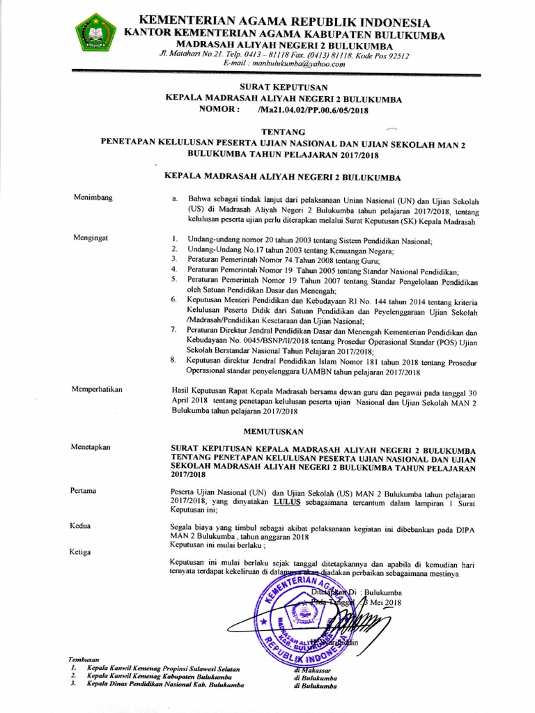 Dengan diterbitkannya surat keputusan ini, saya selaku pimpinan cv maju mundur: Keputusan kongres iii perhimpunan mahasiswa hukum indonesia nomor : Contoh surat keputusan uppks sebagai penegasan contoh surat keputusan ini terdiri dari beberapa jenis. Kelulusan siswa kelas xii sma negeri krembung tahun pelajaran 2018/2019 kepala sekolah sma negeri krembung setelah Jika bapak/ ibu guru membutuhkan sebuah contoh untuk membuat sk dan berita acara rapat kelulusan untuk sekolahnya.
